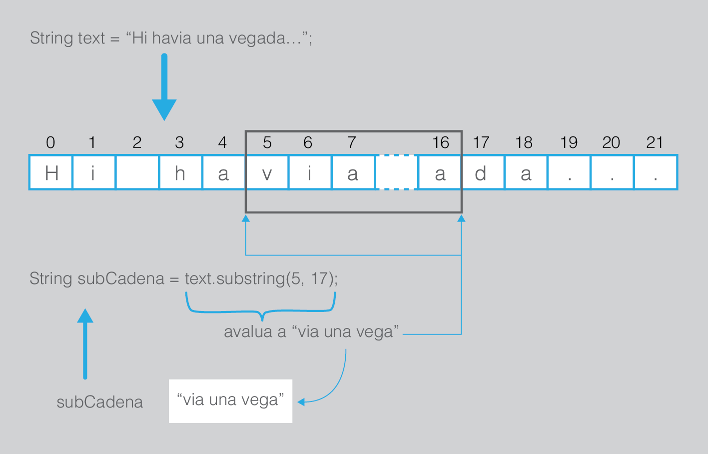 La figura mostra un esquema del comportament del mètodesubstringsi s’extreu una subcadena de la frase “Hi havia una vegada…”.